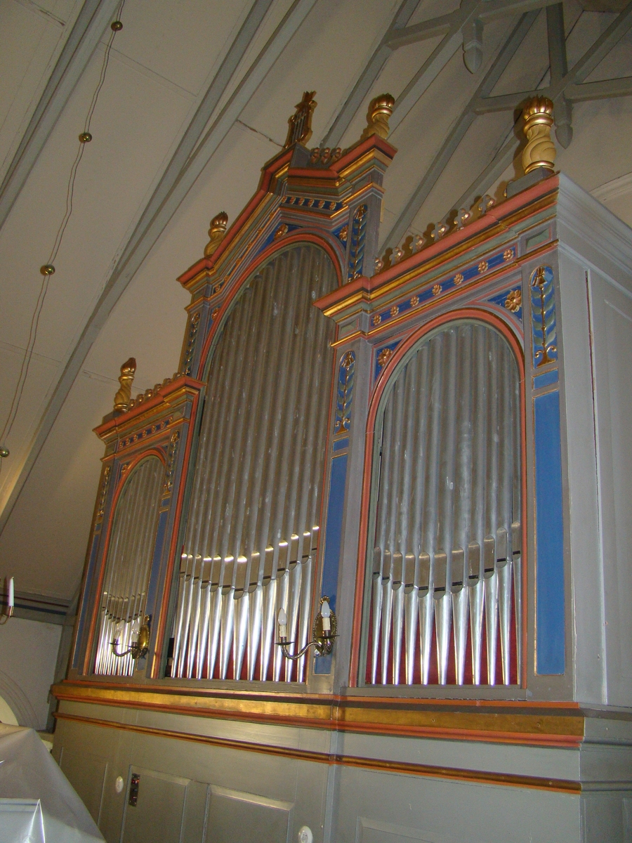 Orgelfasad i Hamneda kyrka. Efter konservering.