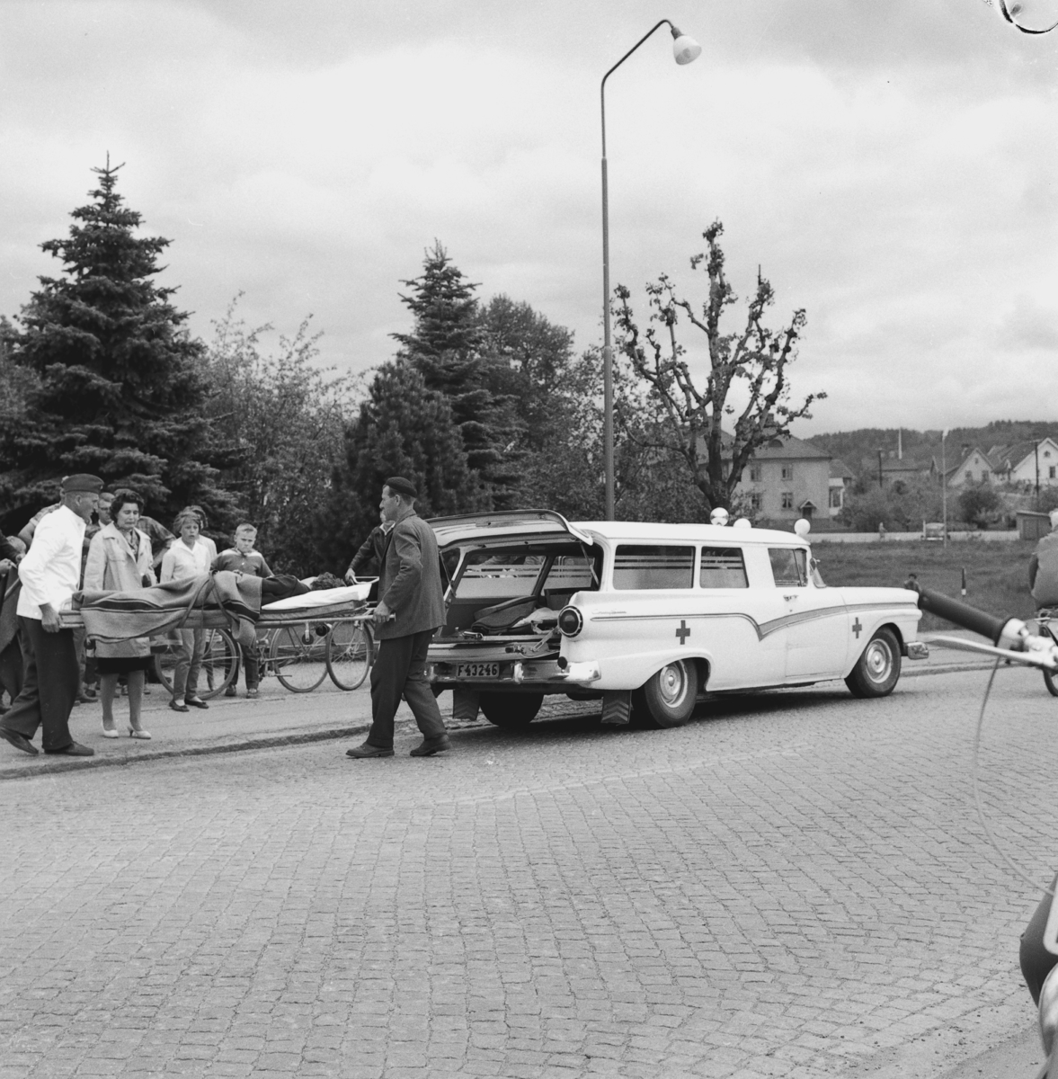 En person blir hämtad med ambulans vid Mjölkafållan i Huskvarna.
