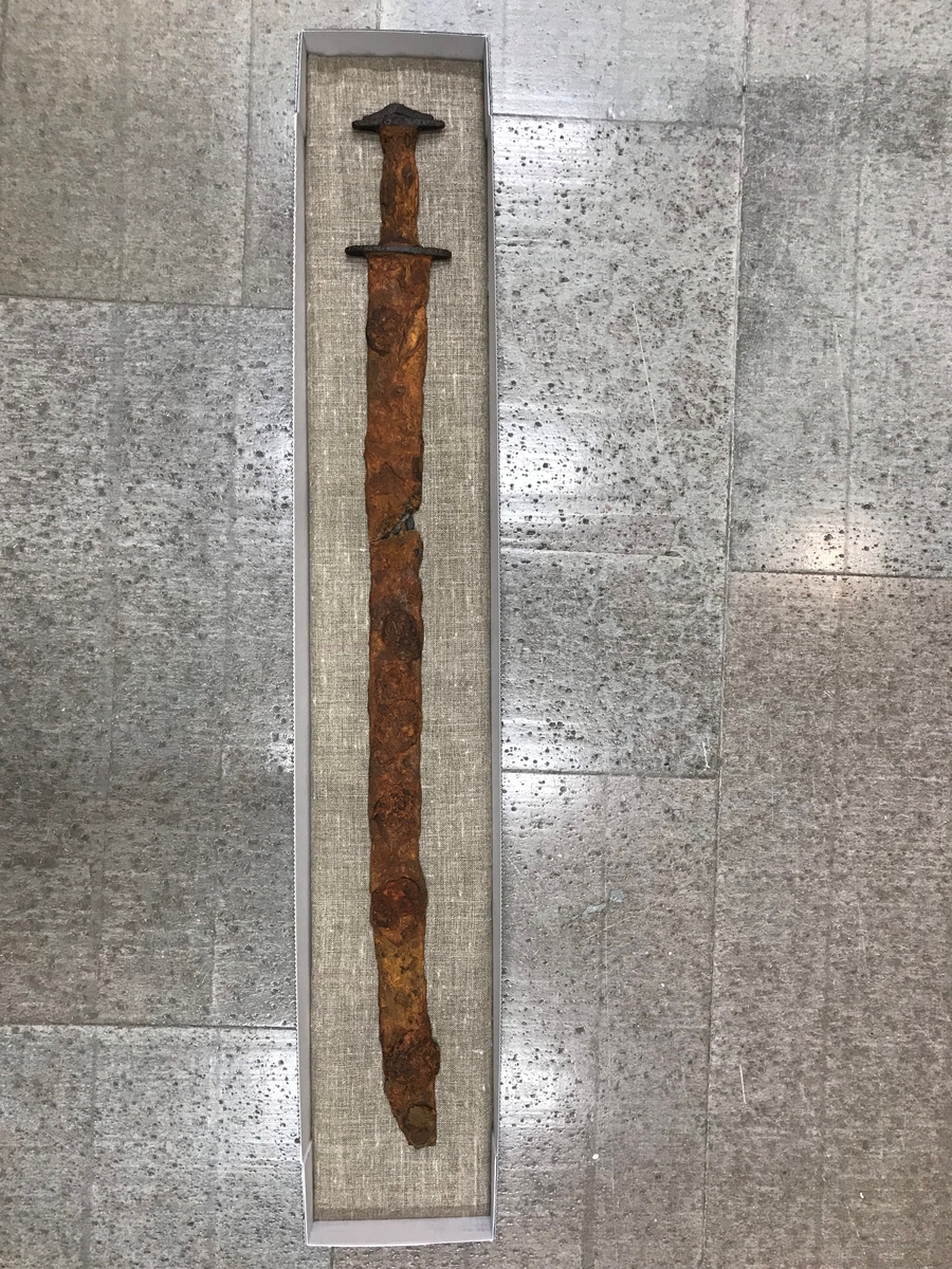 Järnålderssvärd, det s.k. Sagas svärd, färdigkoncerverat och precis ankommet till Jönköpings läns museum.