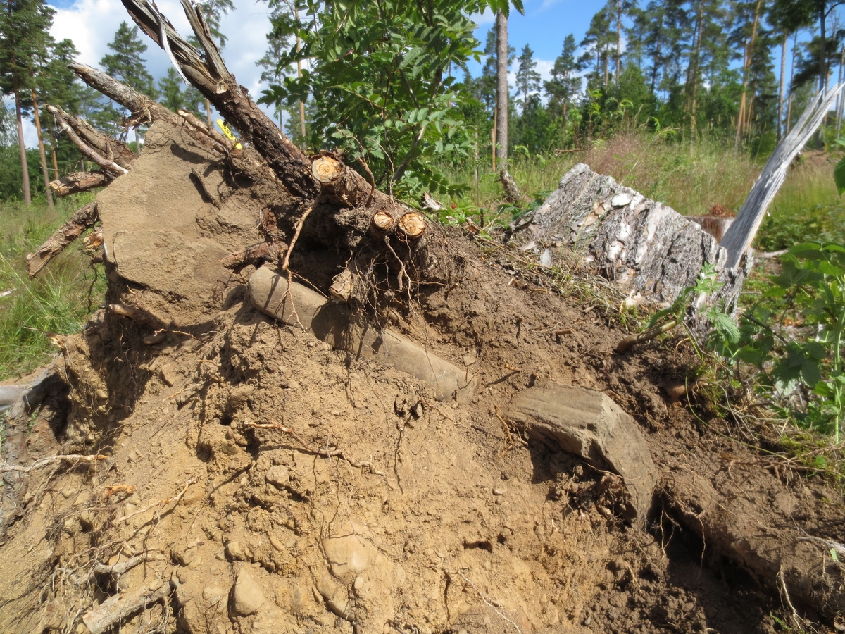 En rotvälta som rivit upp en grav på mellersta gravfältet på Visingsö.