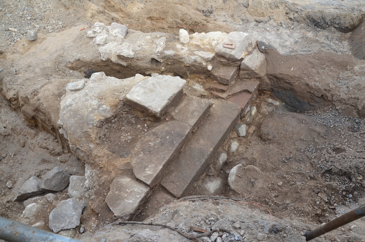 Del av Jönköpings fästningsvall. Vid vallens östra ände mot Munksjön hade vallen förstärkts med en stenmur- och trappa.