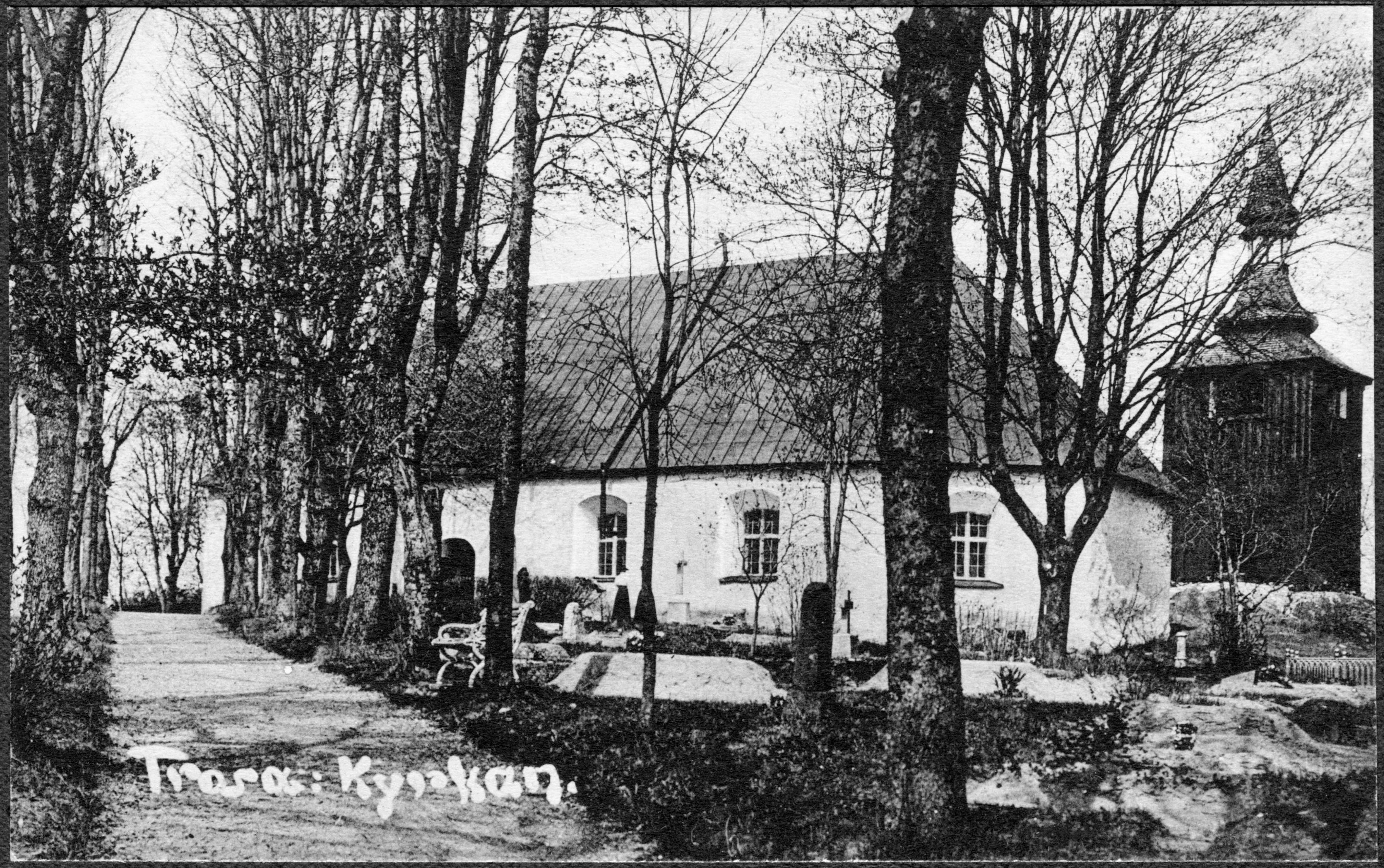 Kyrkan och klockstapeln mot sydöst. Vykort.