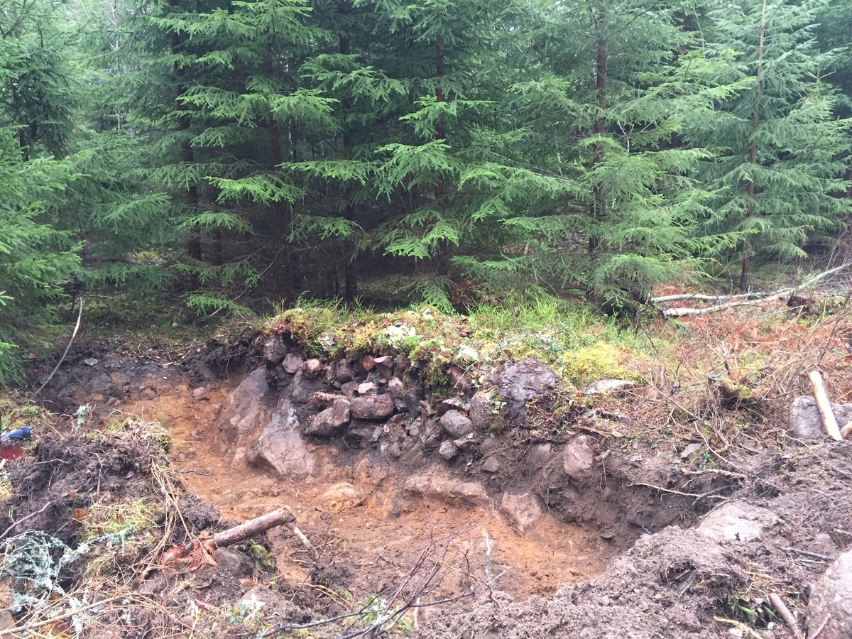 Röjningsröse halverat på mitten och undersökt i samband med en arkeologisk förundersökning i Bellö socken i Eksjö kommun.