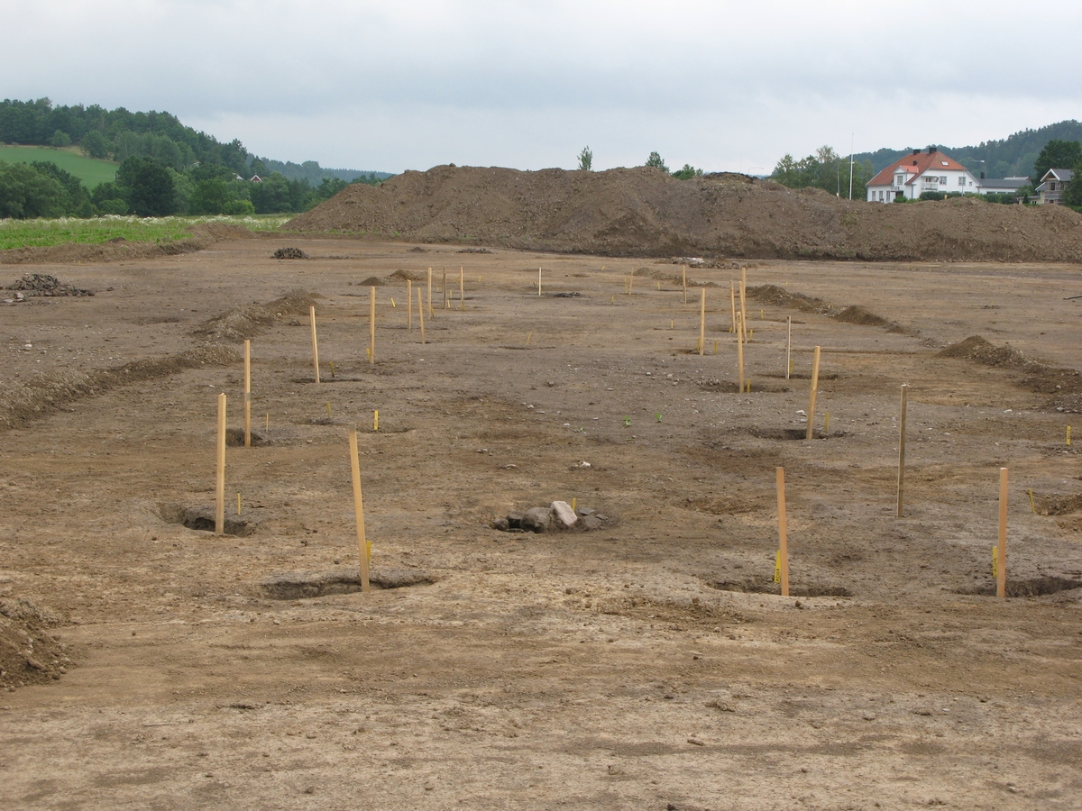 Ett långhus som framkommit vid en arkeologisk undersökning i Råby, Skärstad socken i Jönköpings kommun. De höga käpparna markerar var de takbärande stolparna till huset har stått. Dateringsresultaten från huset var varierat och visade att huset antingen kan höra till förromersk järnålder eller mellersta bronsålder.