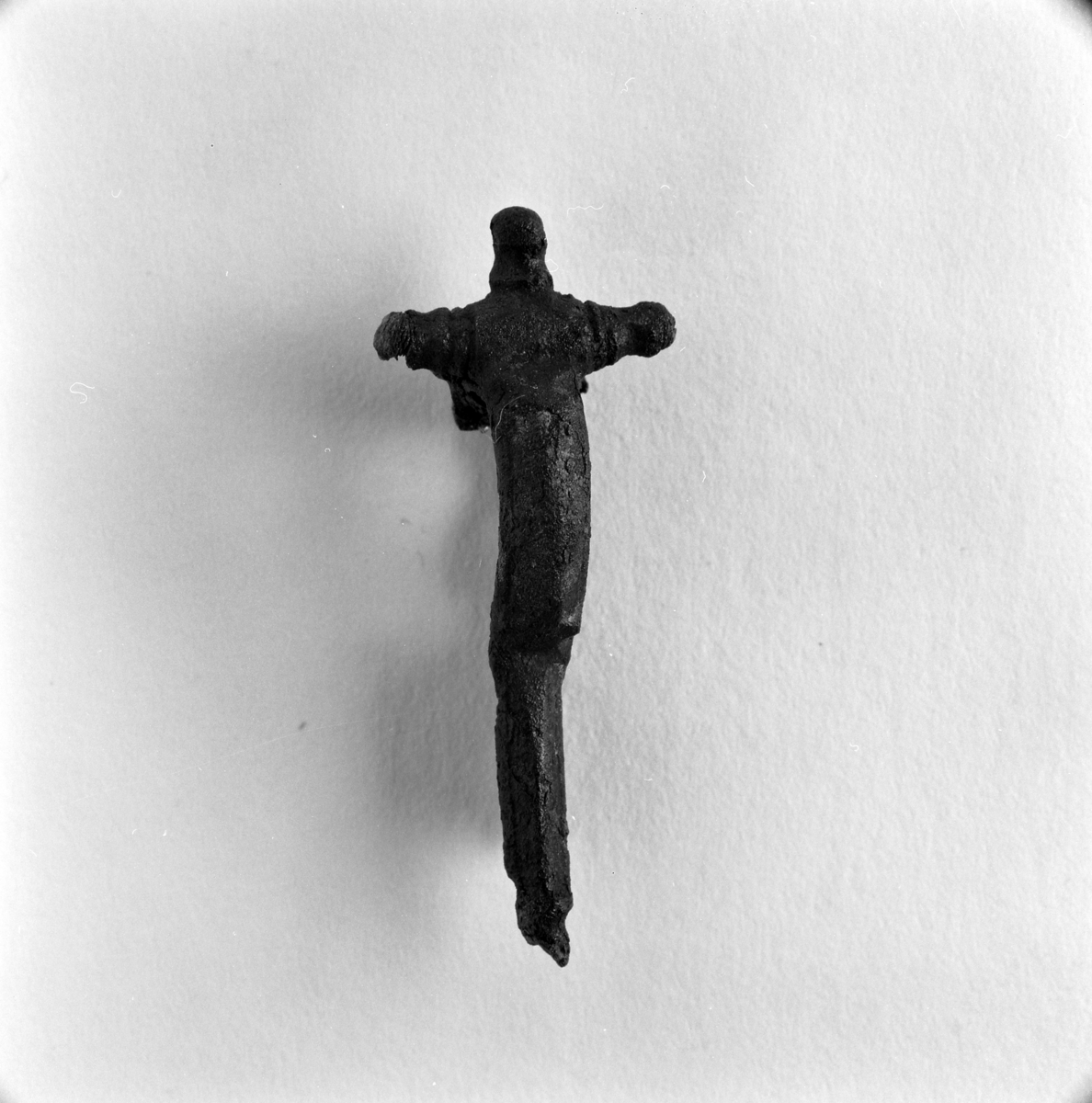 Ett dräktspänne, så kallad fibula som hittades vid en arkeologisk undersökning av ett gravfält i Byarum i Vaggeryds kommun. Fyndnummer JM.55938:96. Beskrivs som en korsformad bronsfibula med en nål av järn.