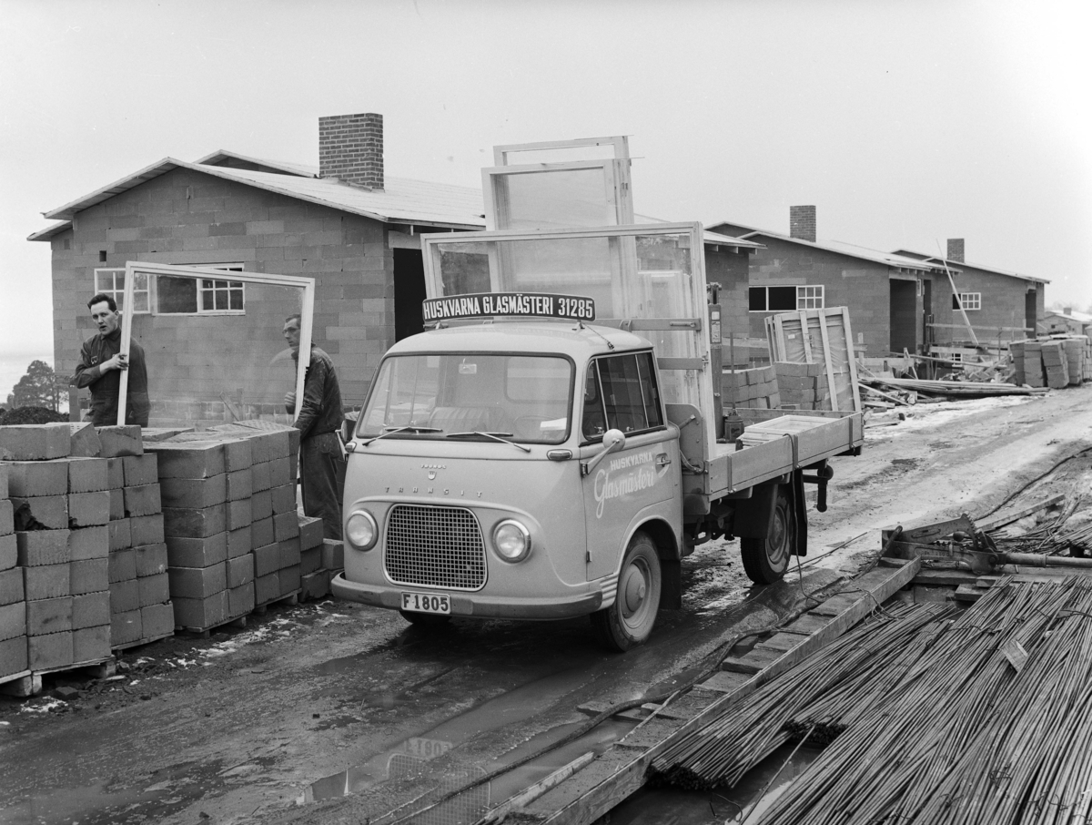Huskvarna glasmästeri är ute och levererar glas, år 1963.