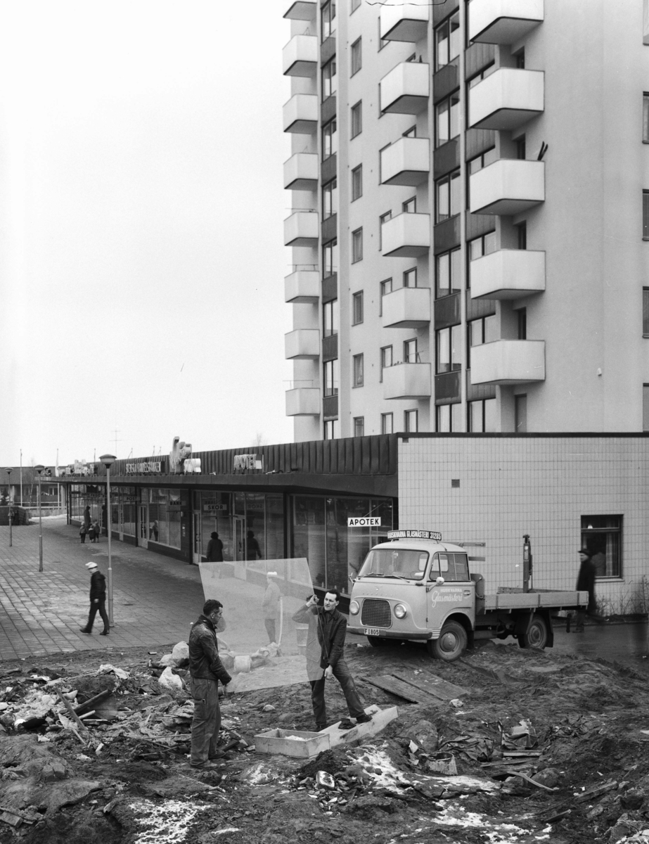 Huskvarnas glasmästeri är ute och leverera glas år 1963.