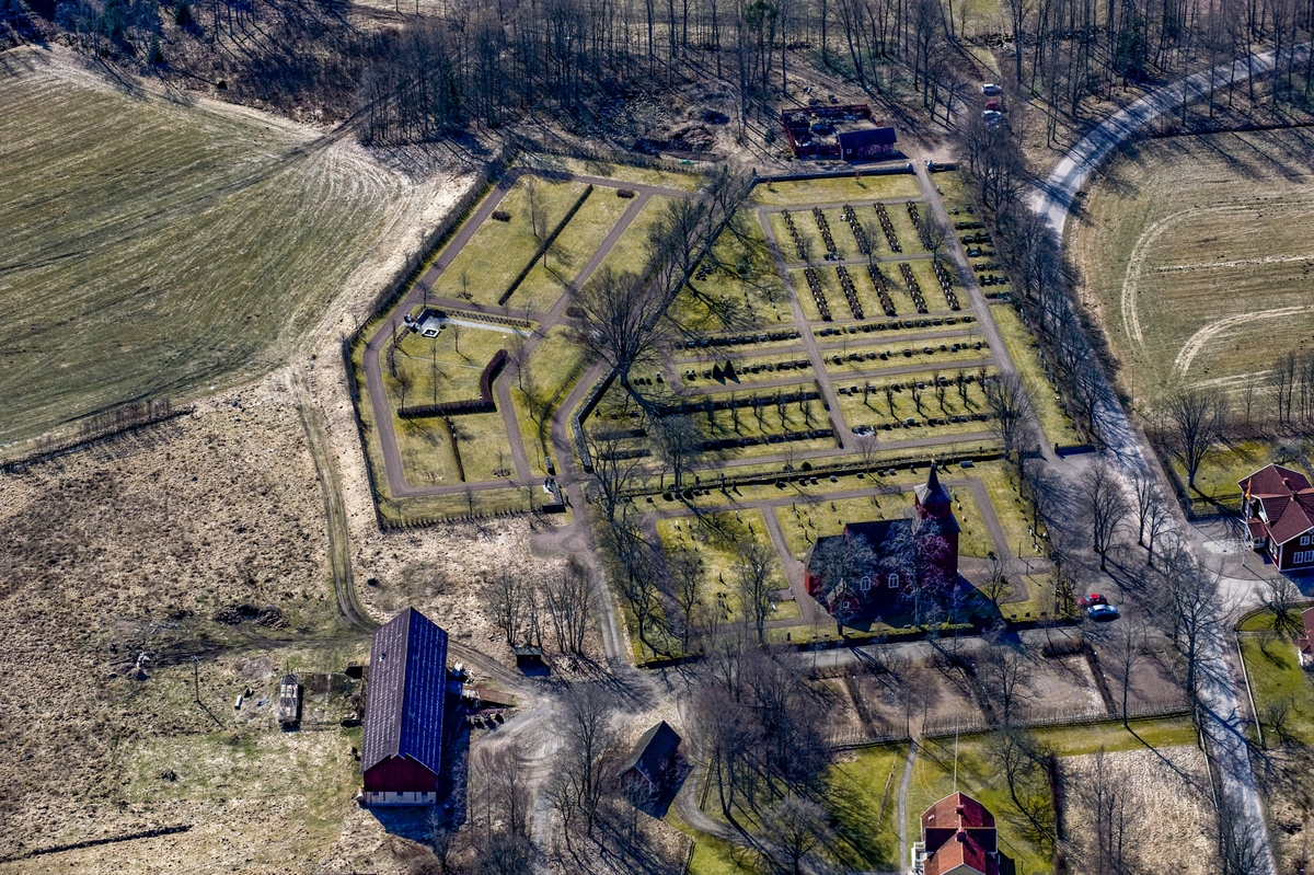 Flygfoto över Kävsjö kyrka i Gnosjö kommun.