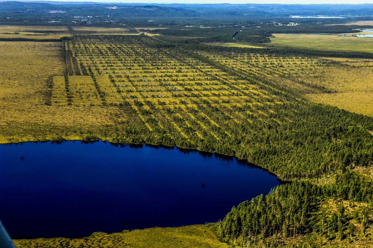 Flygfoto över Kalvasjön på Store mosse i Gnosjö, Värnamo och Vaggeryds kommun.