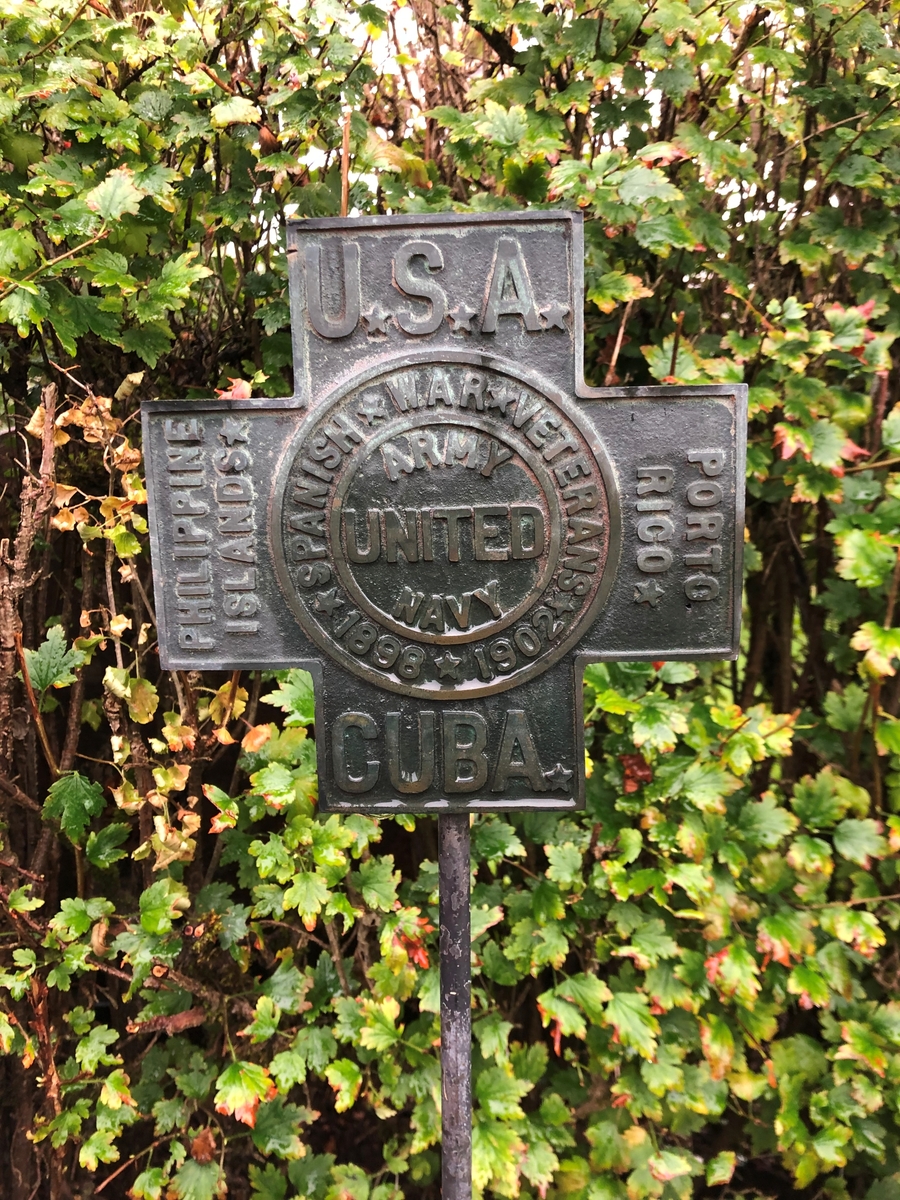 Amerikansk minnesplakett vid gravvård, Stockaryds kyrkogård.