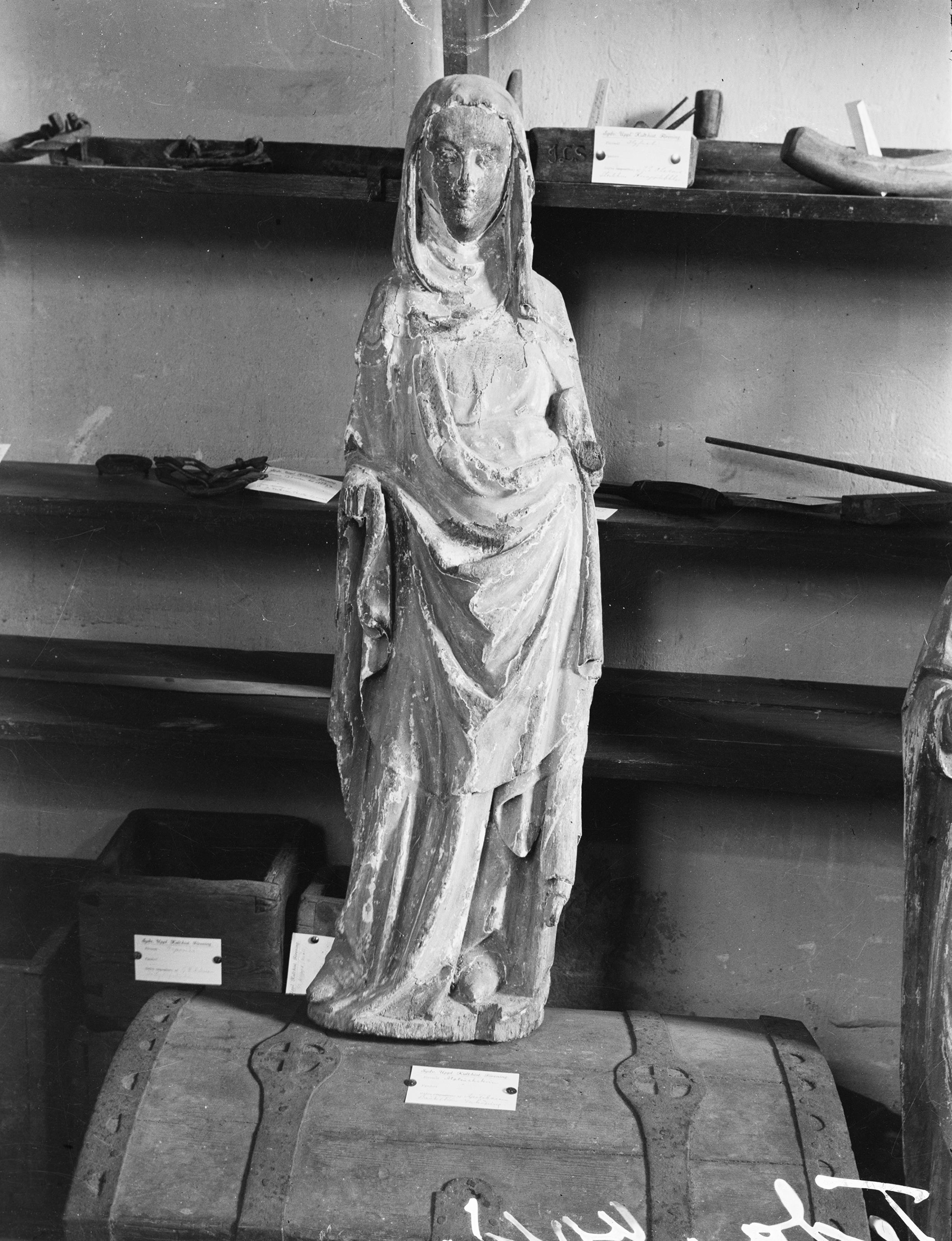 Skulptur, trä, kvinnligt helgon, 1300-talets förra hälft.