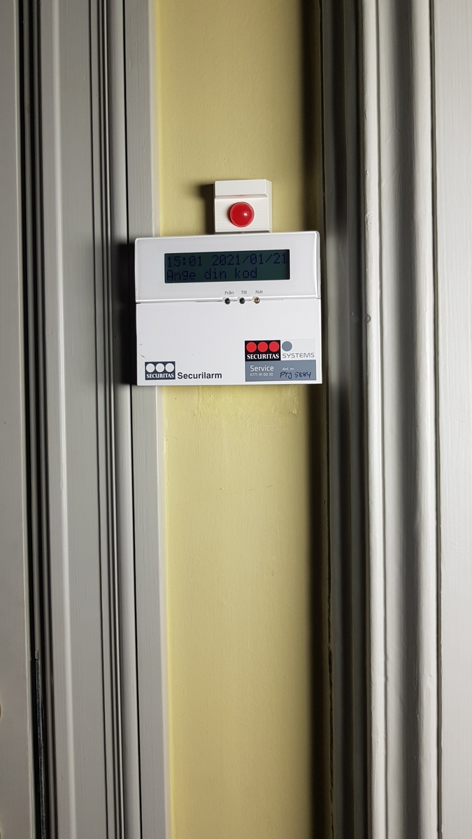 Länsresidenset i Jönköping, plan 2. Detalj: inmålat fält under ny larmdosa.