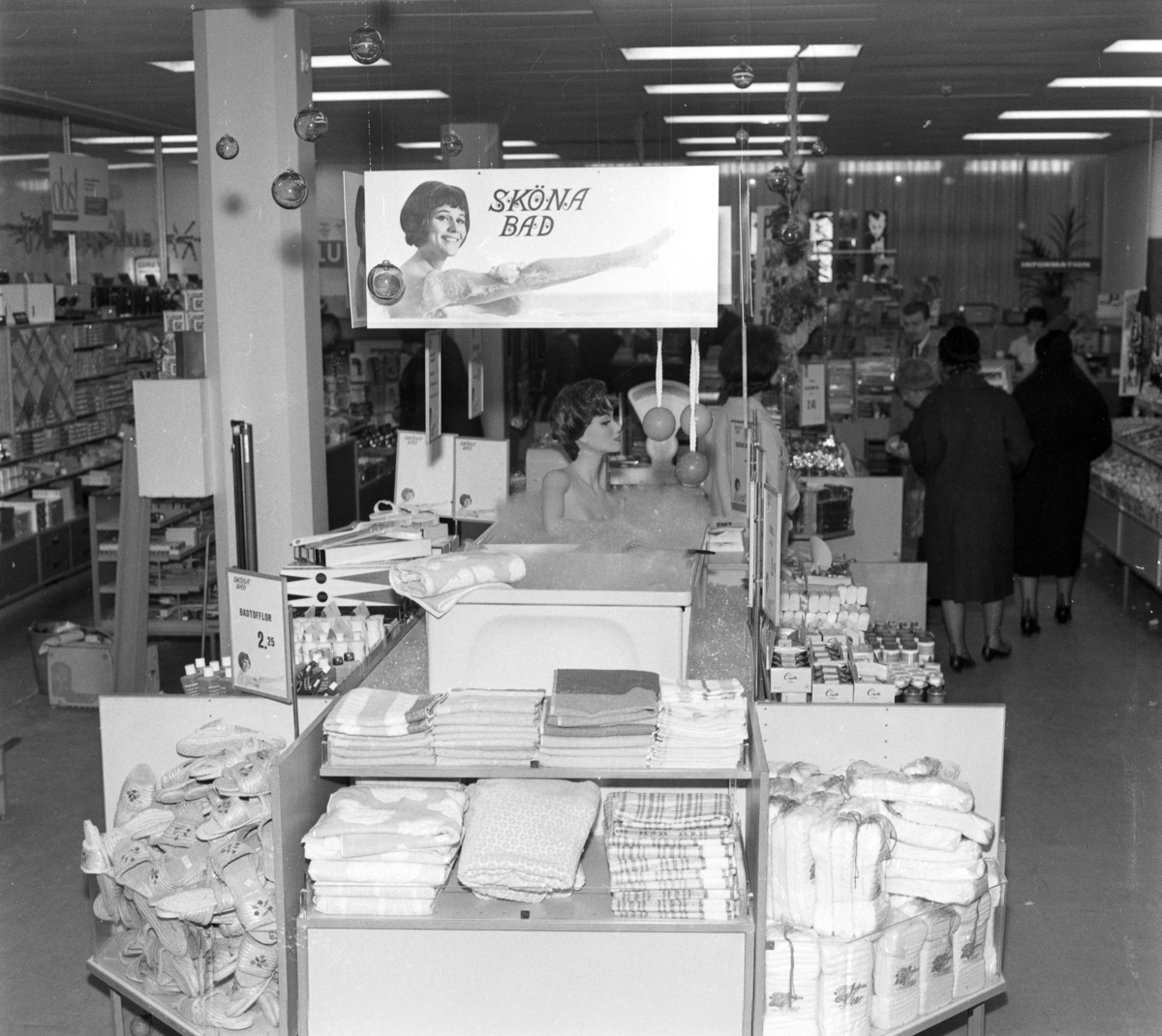 Avdelning på varuhuset Domus i Jönköping, här visas det reklam för sköna bad.