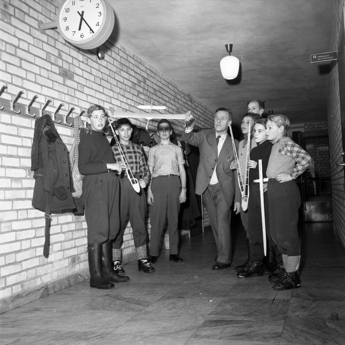 Titel: Flygplansbyggare i Norrängsskolan i Huskvarna den 16 februari 1956.