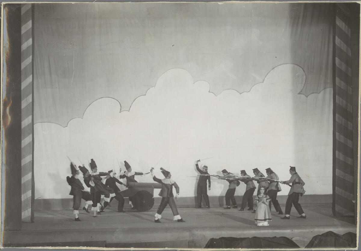 Scenbild från Svenska Balettens uppsättning "Leksakslådan".