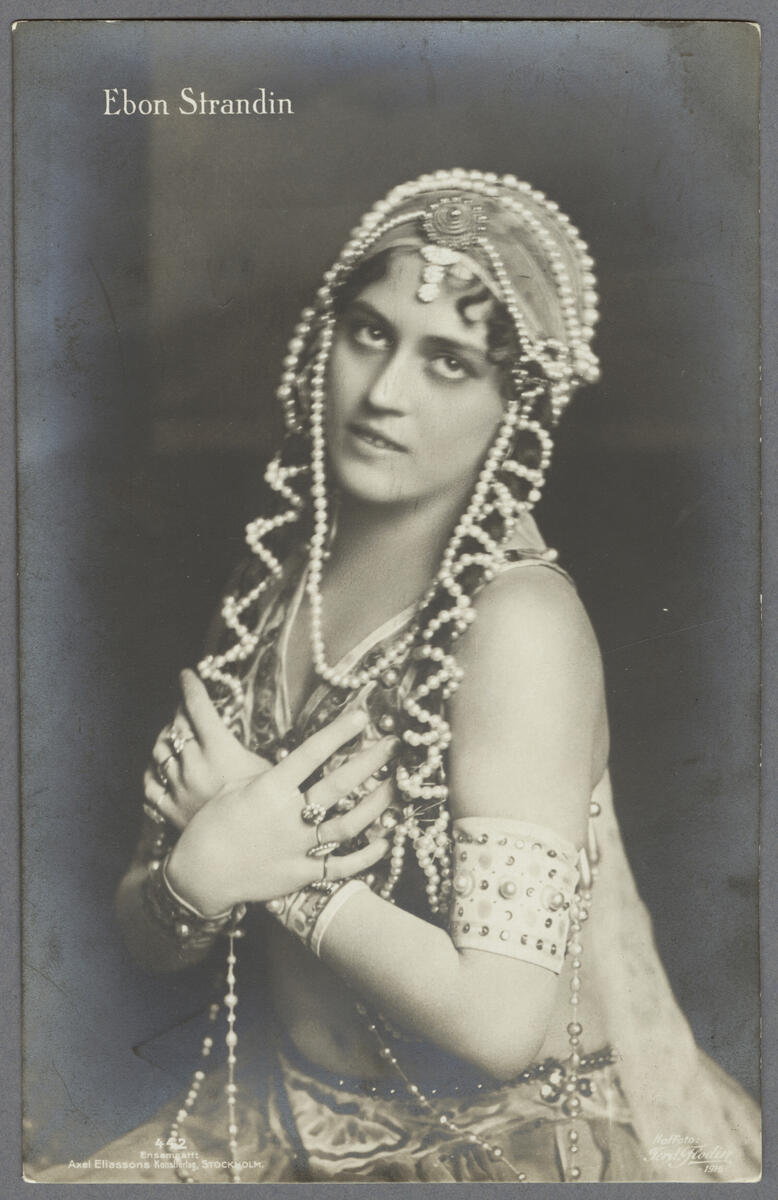 Vykort med motiv av Ebon Strandin i operan "Marouf - skomakaren från Kairo".