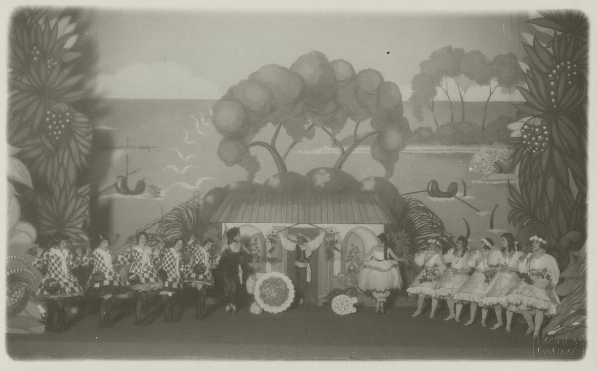 Scenbild från Svenska Balettens uppsättning "Fågelhandlaren".