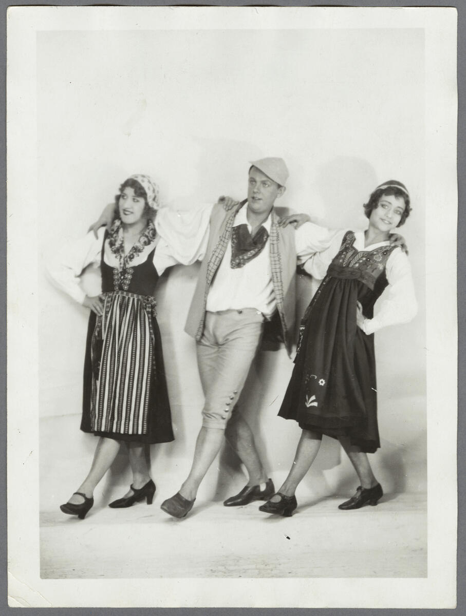 Rollporträtt av Irma Calson, Jean Börlin och Inger Friis i dansnumret "Svenska danser".