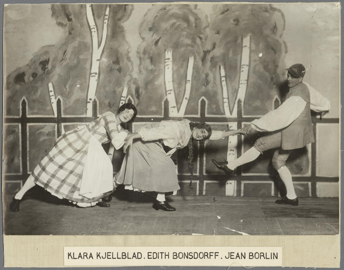 Rollporträtt av Klara Kjellblad, Edith von Bonsdorff och Jean Börlin i uppsättningen "Midsommarvaka".
