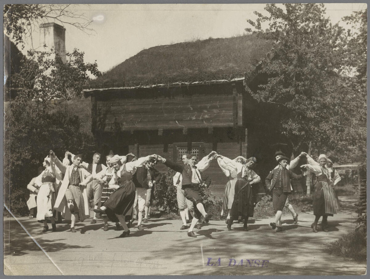Svenska Balettens dansare på Skansen, förmodligen i uppsättningen "Dansgille".