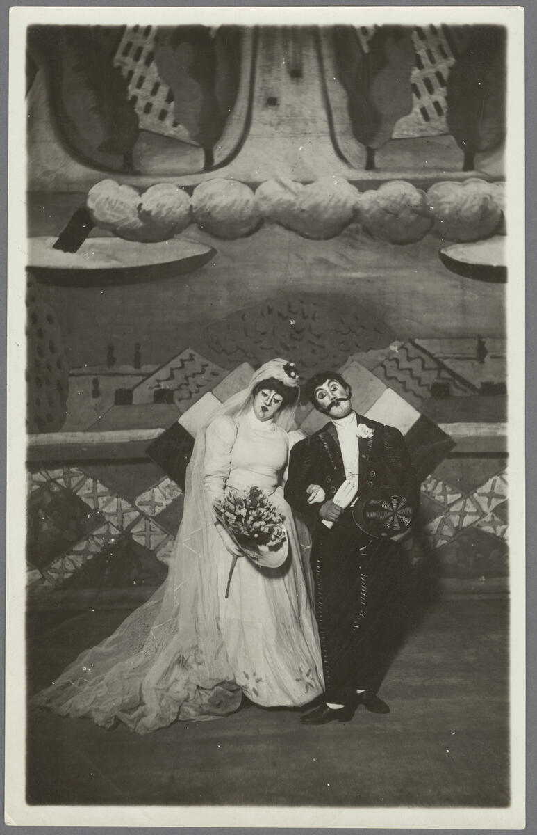 Rollporträtt av Margit Wåhlander och Paul Eltorp i uppsättningen "Bröllopet på Eiffeltornet".