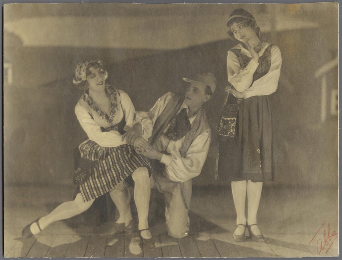 Rollporträtt av Irma Calson, Jean Börlin och Inger Friis i dansnumret "Svenska danser".