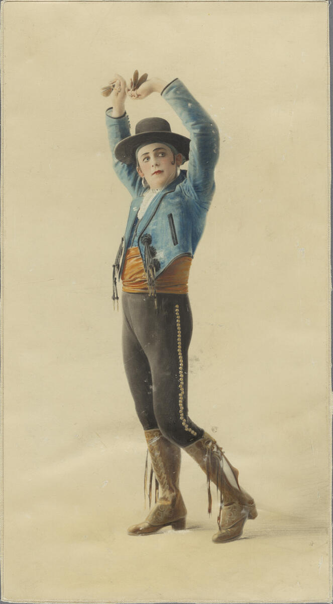 Kolorerat rollporträtt av Jean Börlin i uppsättningen "Iberia".
