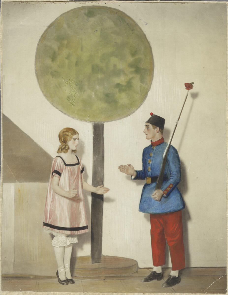 Kolorerat rollporträtt av Jolanda Figoni och Holger Mehnen i uppsättningen "Leksakslådan".
