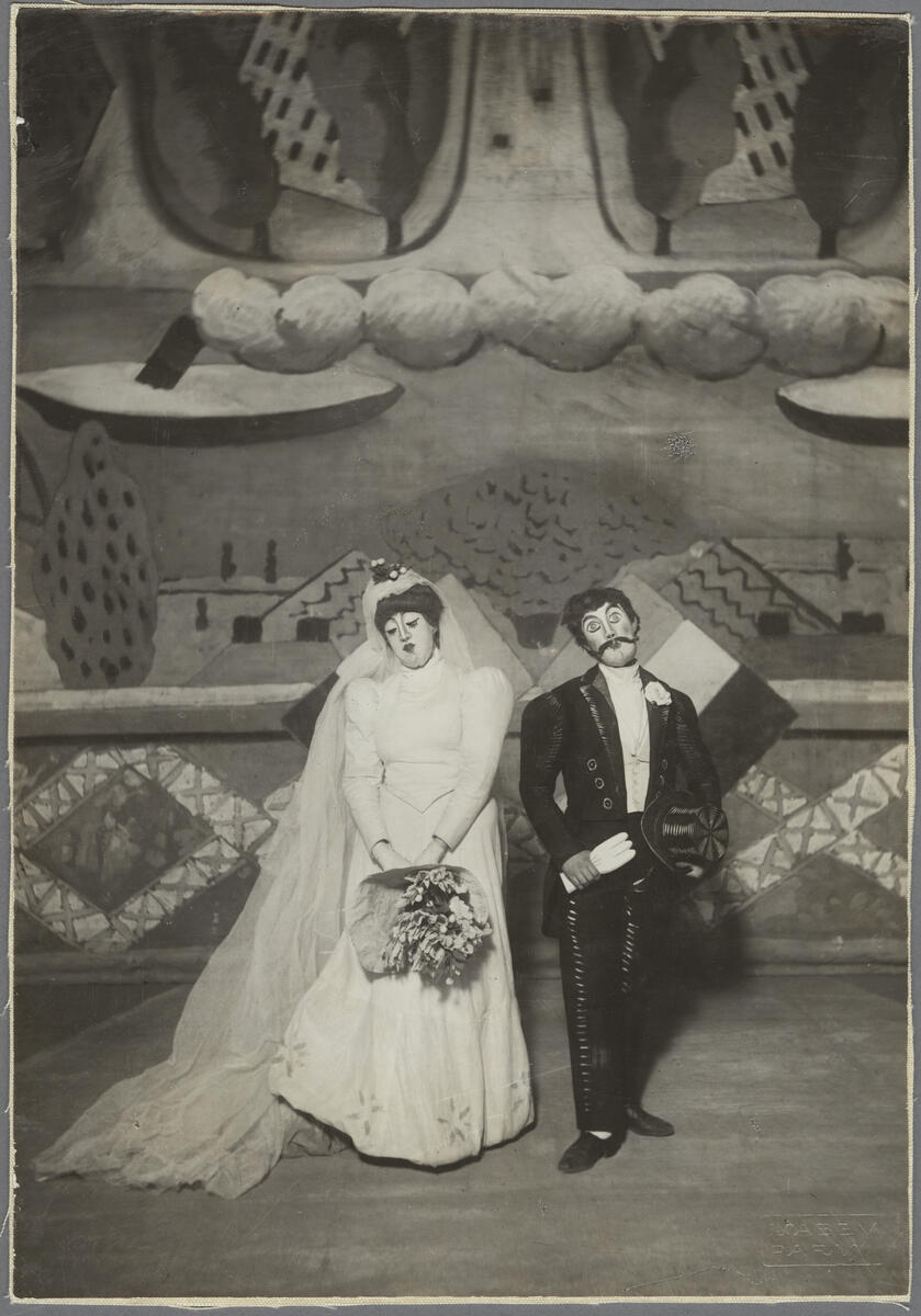Rollporträtt av Margit Wåhlander och Paul Eltorp i uppsättningen "Bröllopet på Eiffeltornet".