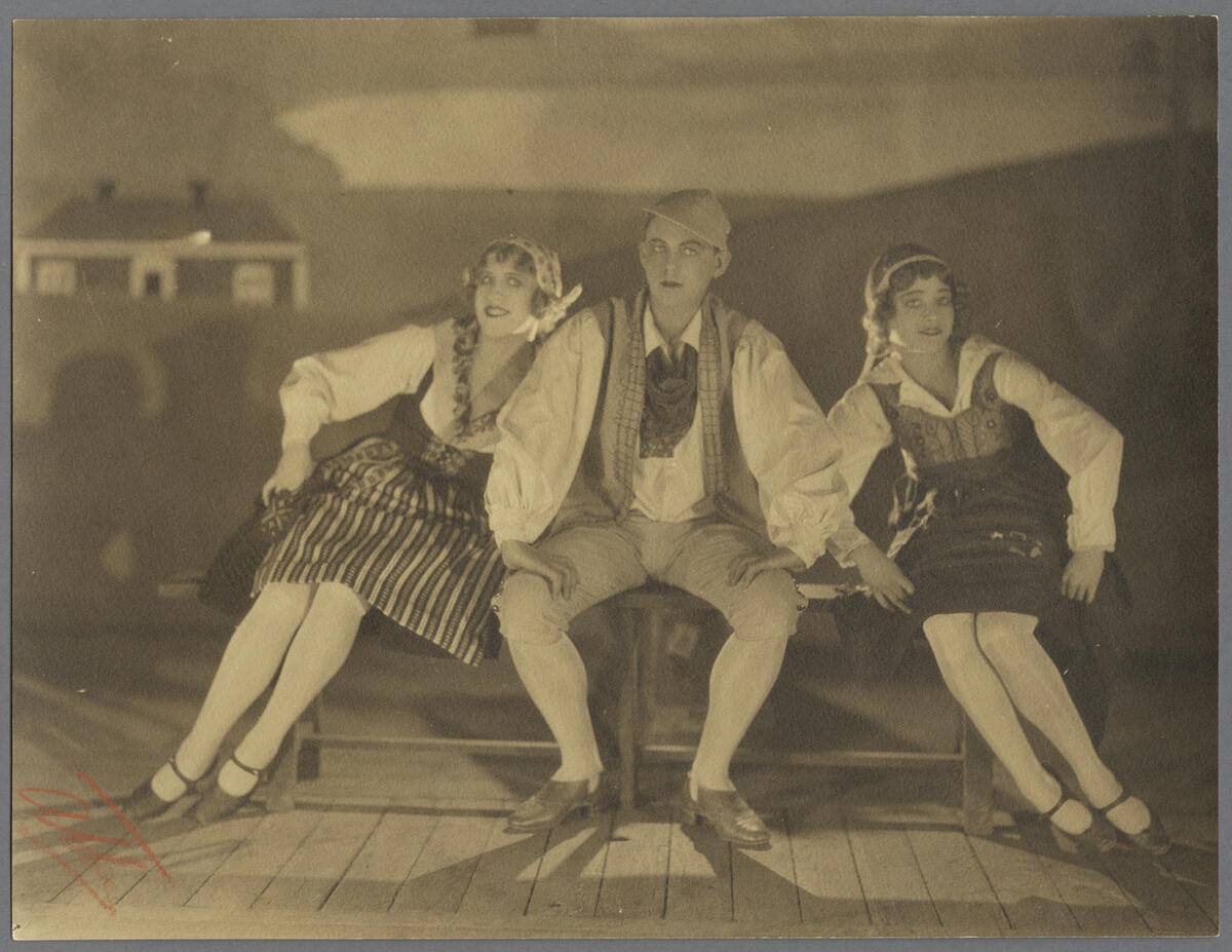 Rollporträtt av Irma Calson, Jean Börlin och Inger Friis i dansnumret "Svenska danser".