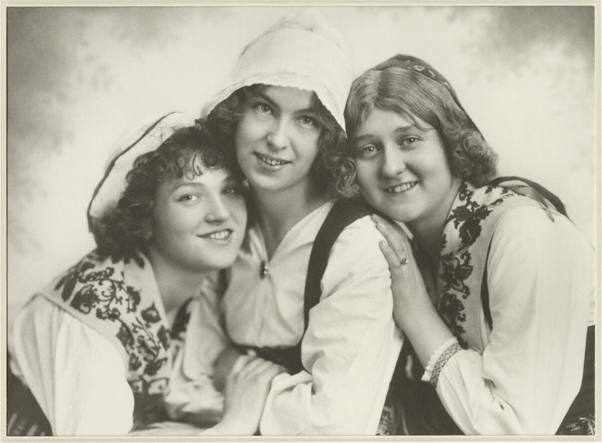 Rollporträtt av Ingeborg Kähr, Greta Kähr och Valborg Larsson i oidentifierad uppsättning.