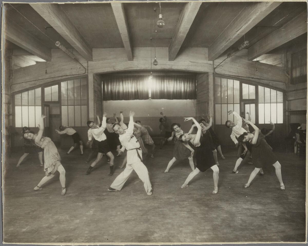 Delar av Svenska Baletten i deras repetitionssal på Théâtre des Champs-Élysées.
