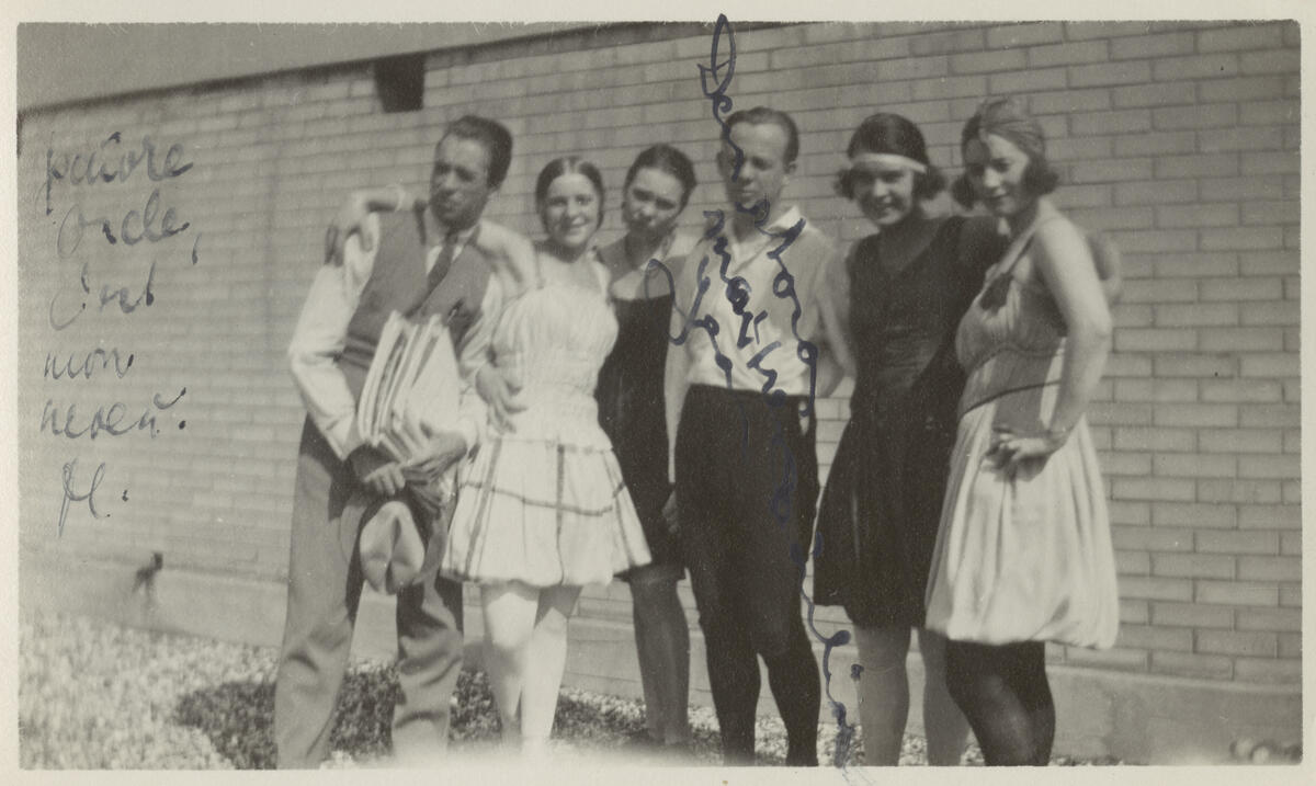 Delar av Svenska Balettens ensemble på taket till Théâtre des Champs-Élysées.