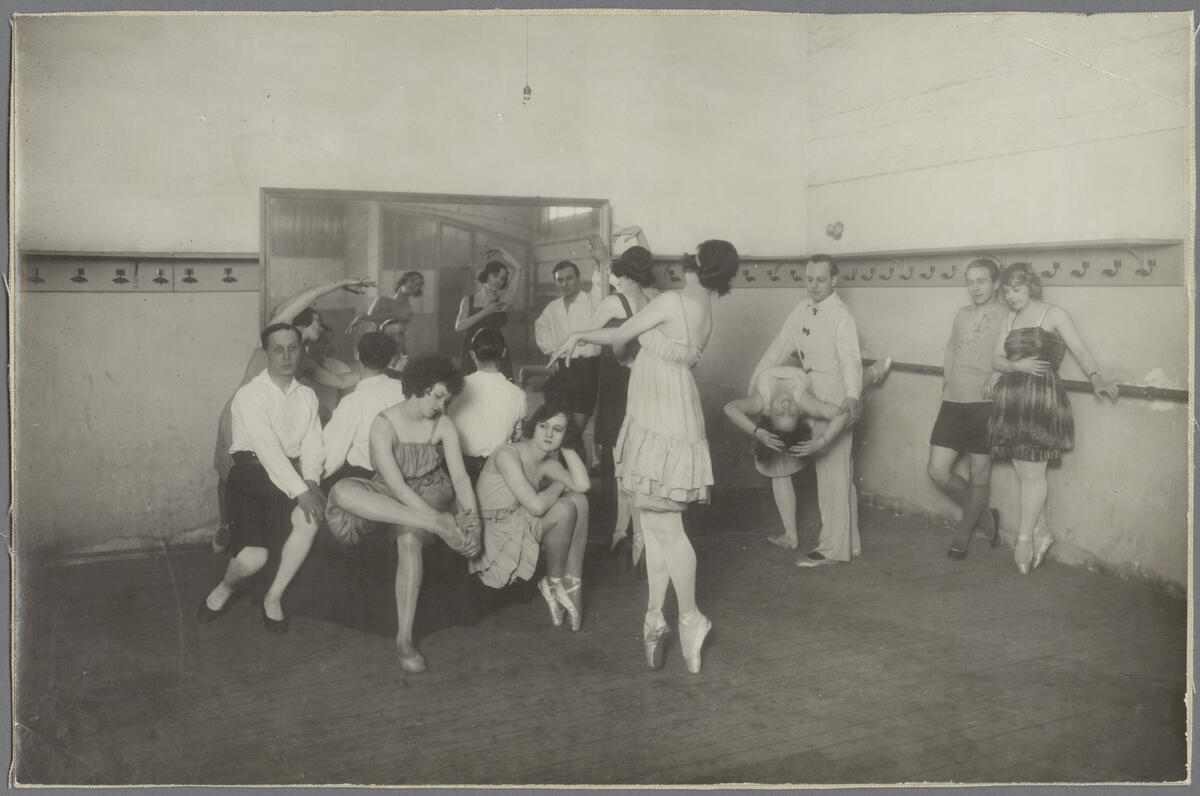 Delar av Svenska Baletten i deras repetitionssal på Théâtre des Champs-Élysées.
