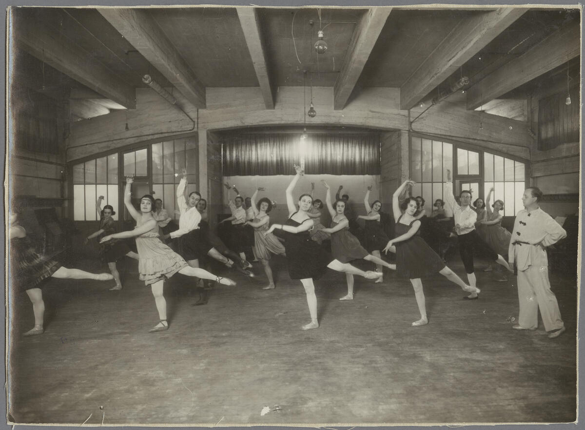Delar av Svenska Baletten i deras repetitionssal på Théâtre des Champs-Élysées.