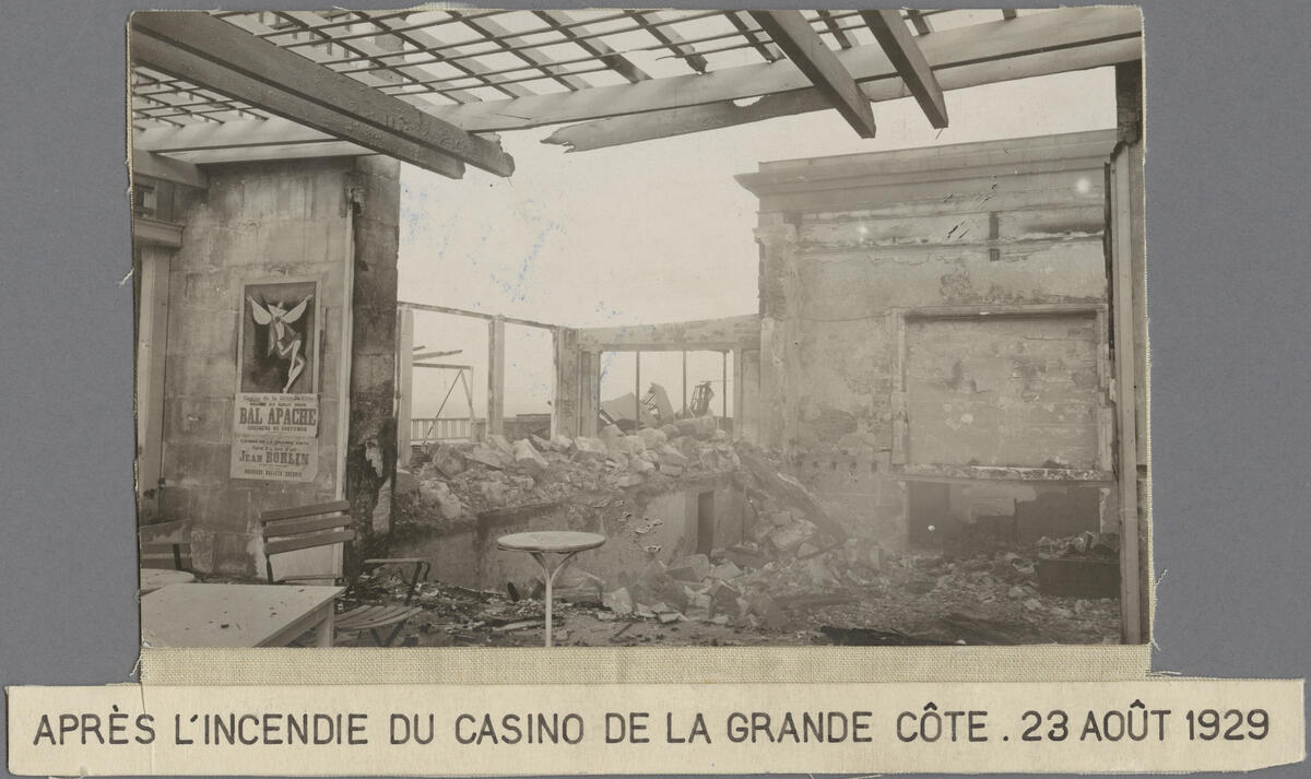 Jean Börlins affischer inuti det nedbrunna Casino de la Grande Côte.