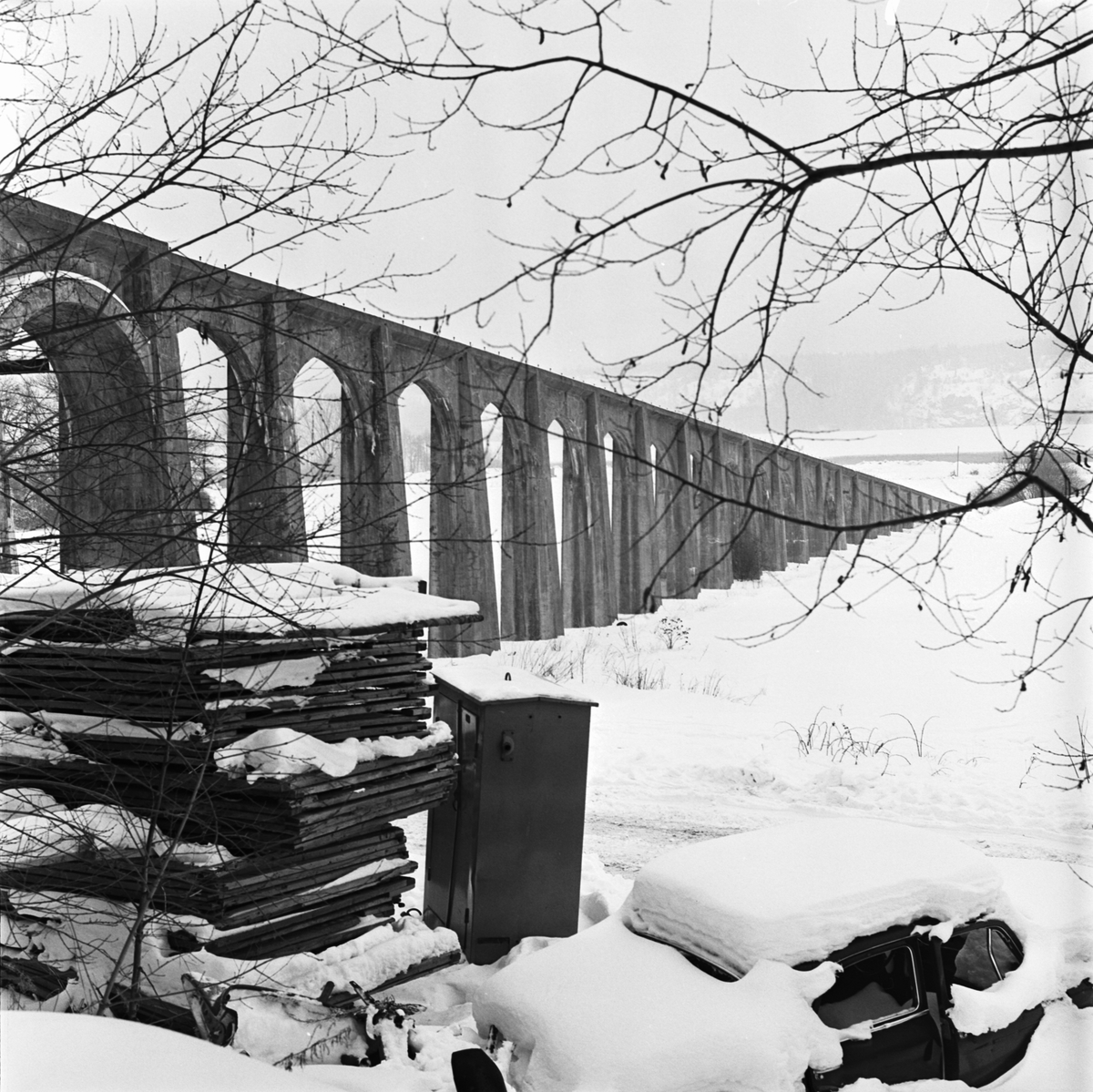 Pudrettfabrik. Sopstation. Sopstation, med transportspår (liknande en romersk viadukt), till Alby gård.