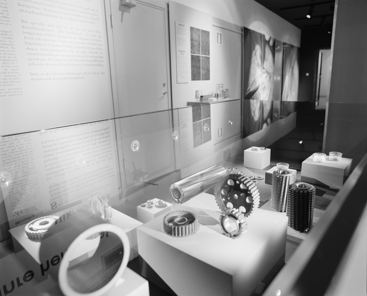 "Stålets inre hemligheter", monter med stålföremål, Ferrumutställningen.