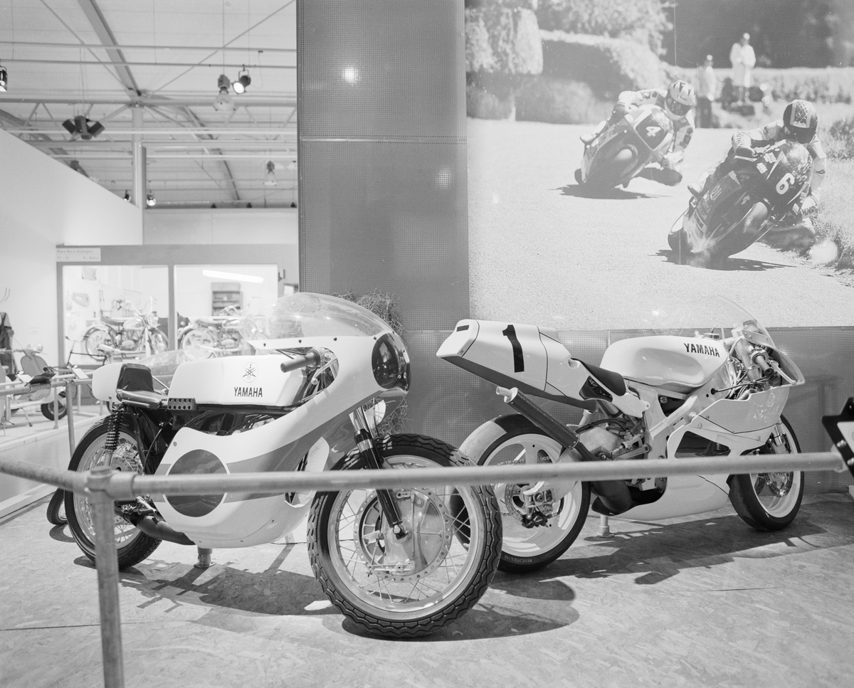 Dokumentation av "Motorcykeln 100 år" i Wallenberghallen. Yamaha racer (2).