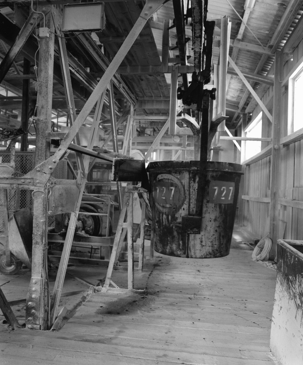 Kalklinbanan Forsby - Köping. Linbanestationen i Köping. Efter tippningen går vagnen över den s.k. vändskivan, där vagnen reses upp igen.