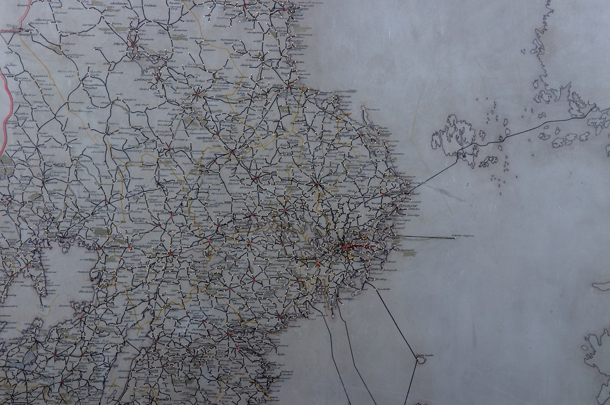 Dokumentation av Sessions rummet i gamla Telemuseum, norra Stallet. Rummet är rivet nu och inventarier är sparade. detta är en del av den karta med lampor i som hängde på väggen i rummet.