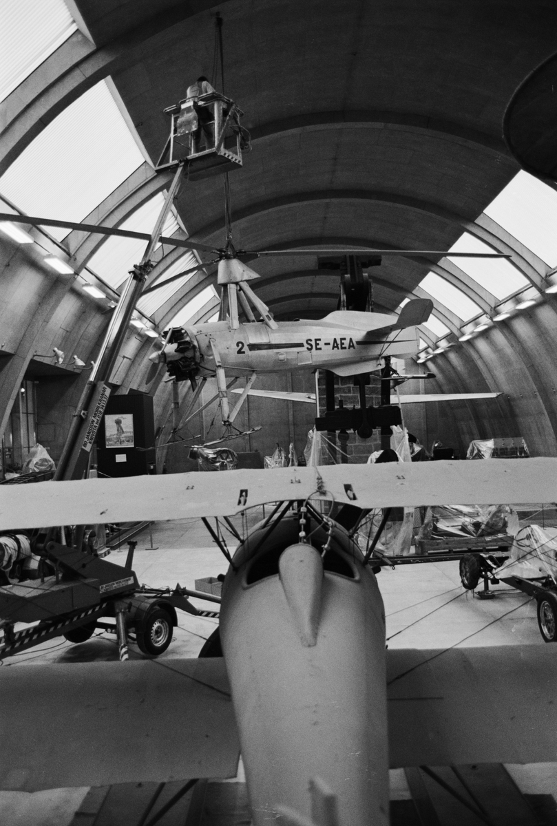 MASKINHALLENS UPPRUSTNING Nedtagning av autogiron. I förgrunden Thulin 1917. >>