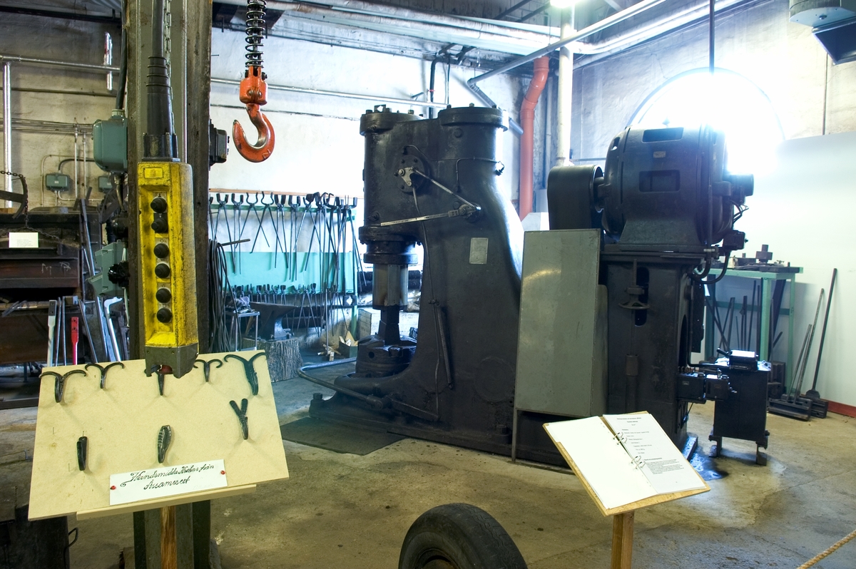 interiör från Åssa industri och bil museum i Åtvidaberg. Detta är en smideshammare som körs vid besök.