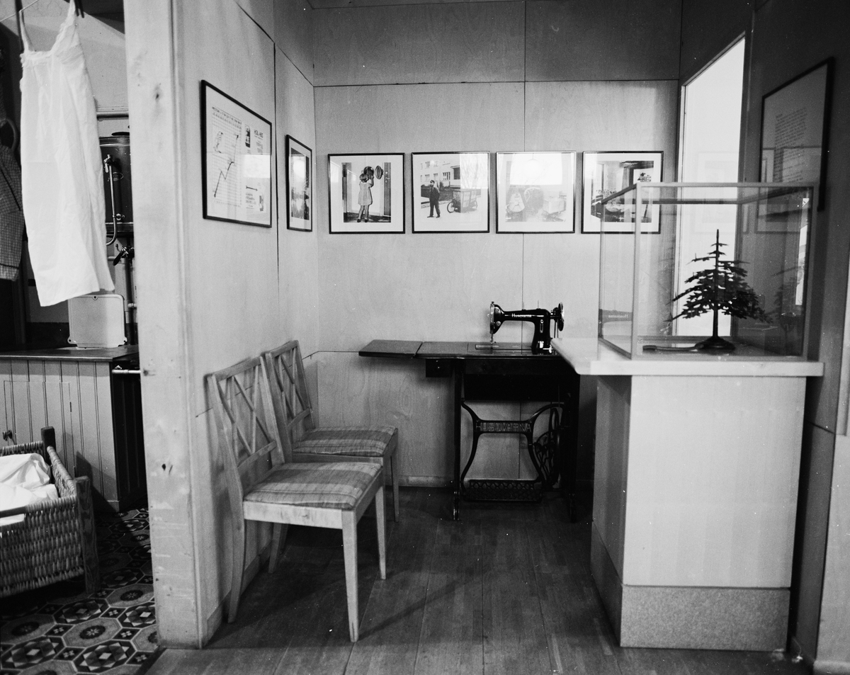 Dokumentation av utställningen "Teknik i hemmet". 1930-tal. Symaskin Husqvarna".