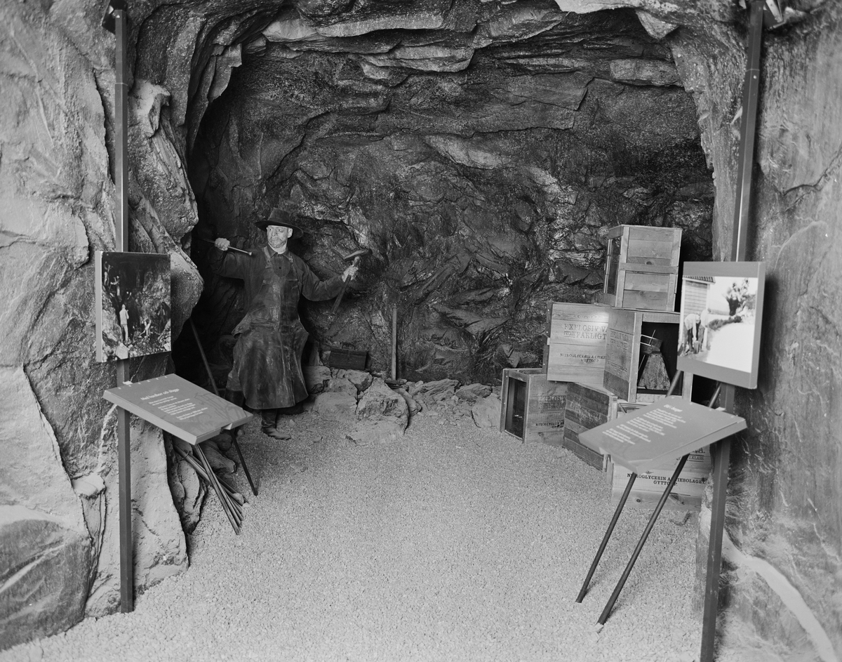Dokumentation av Gruvan. Andra rummet: Interiör. Docka med handborr och slägga.