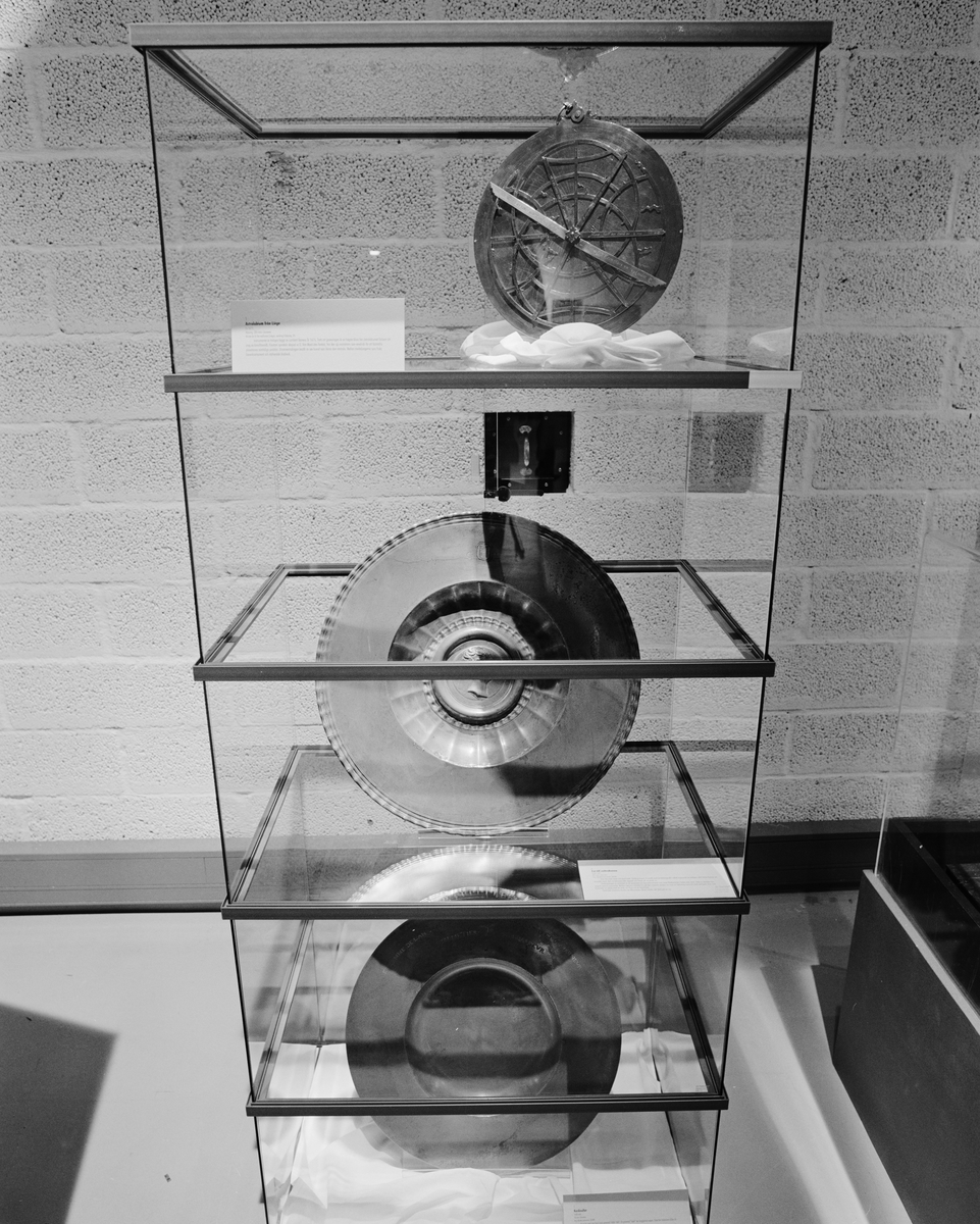 "Vallonien på Louis De Geers tid och idag" utställningen. "Valloniens hanrverkare". Monter, astrolabium från Liége, stort kylafat och kardinalfat.