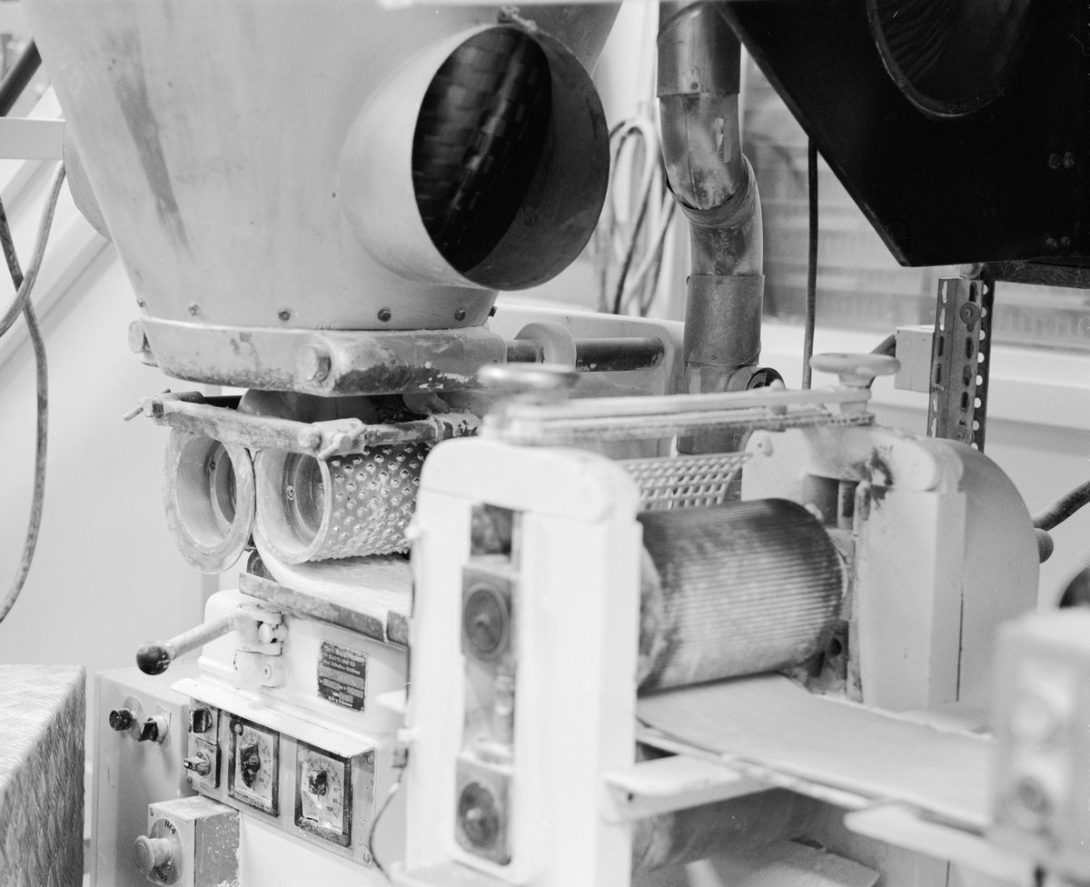 Valsen som stansar ut corpus. Därefter kommer corpus ut på kylbandet.