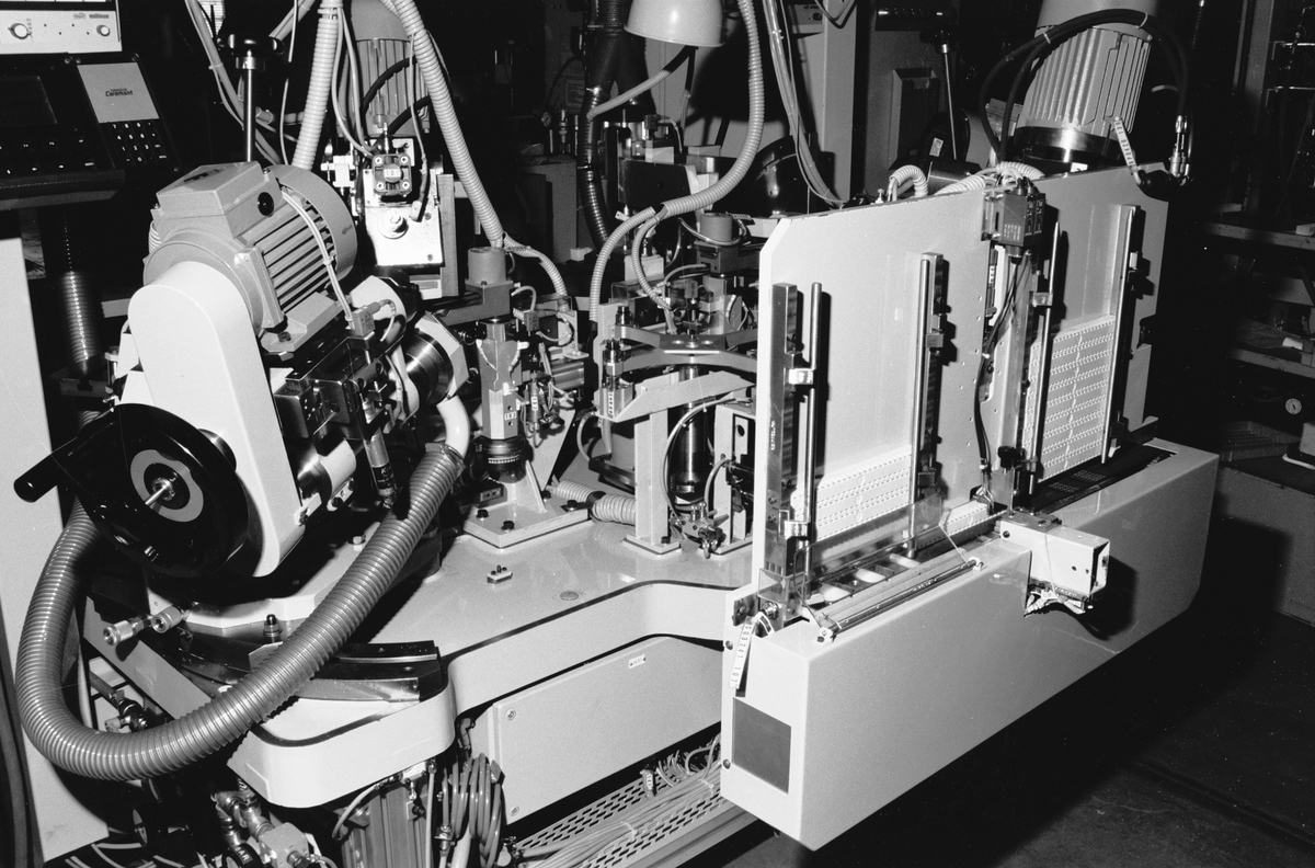 SLIPNING AV FRÄSSKÄR Ovanstående arbetstempon tidigare manuellt utförda slipmaskin SAFAG har nu automatiserats i en helt ny maskinkonstruktion som benämnes Combi-fas >> DUO. >>