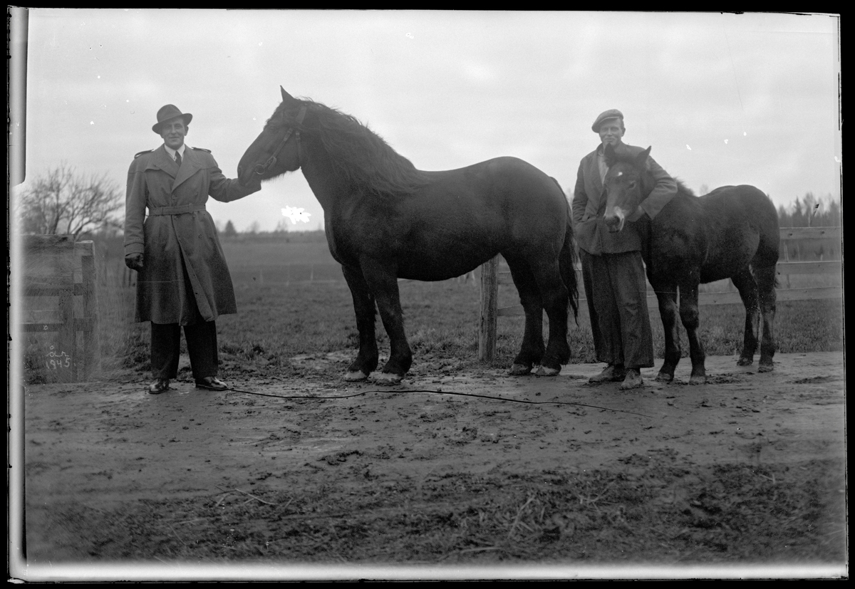 Män med sto och föl på gården Nilsatorp