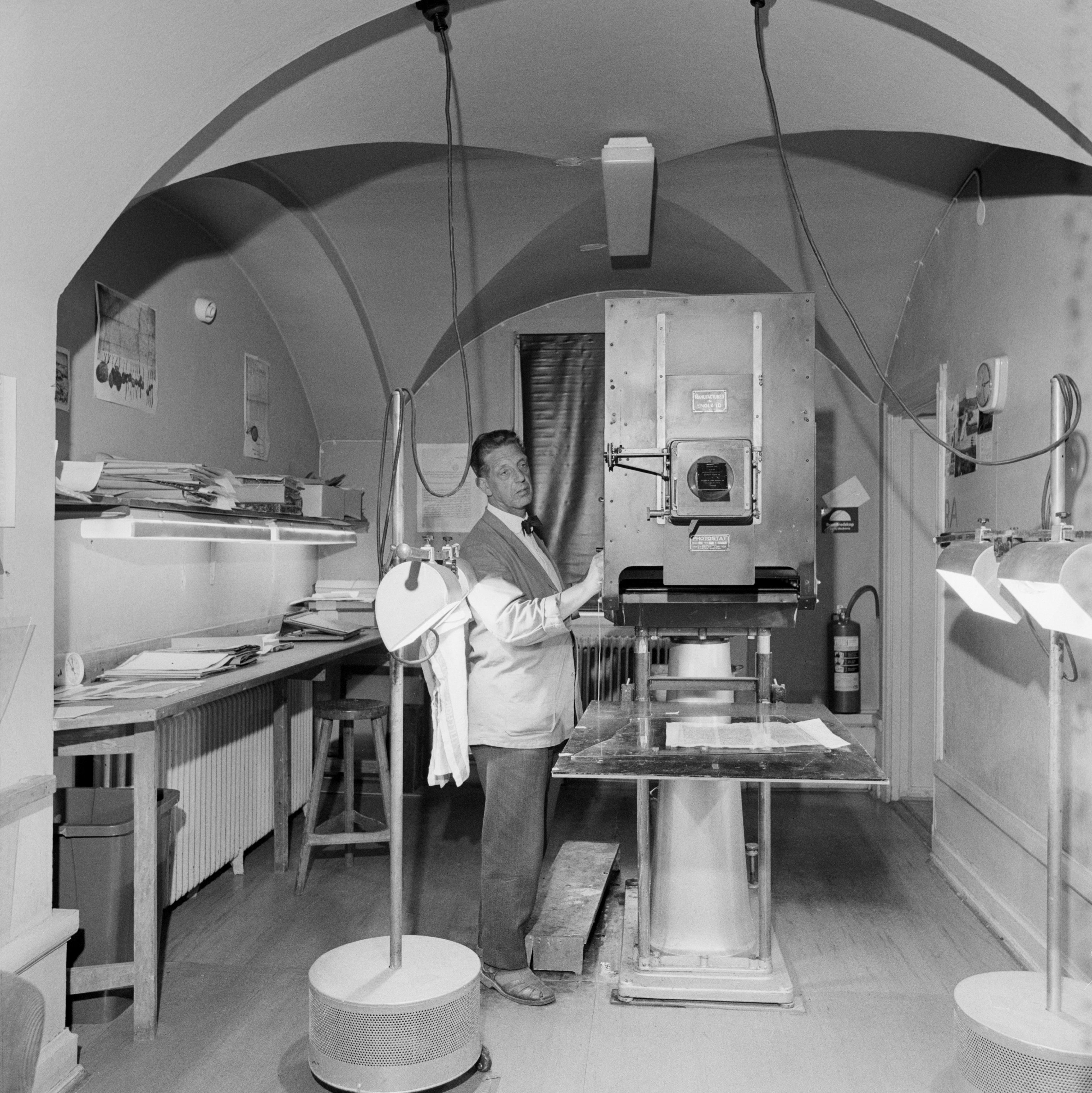 Fotosektionen. Fotograf vid fotostatkopiering.